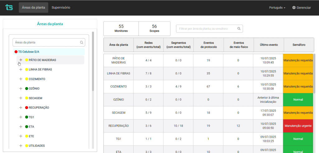 • TS Monitor PROFINET: monitoramento 24/7 de até 250 dispositivos, análise de qualidade de comunicação, topologia dinâmica, KPIs de rede e integração facilitada com SCADA/BI para facilitar o trabalho da manutenção.