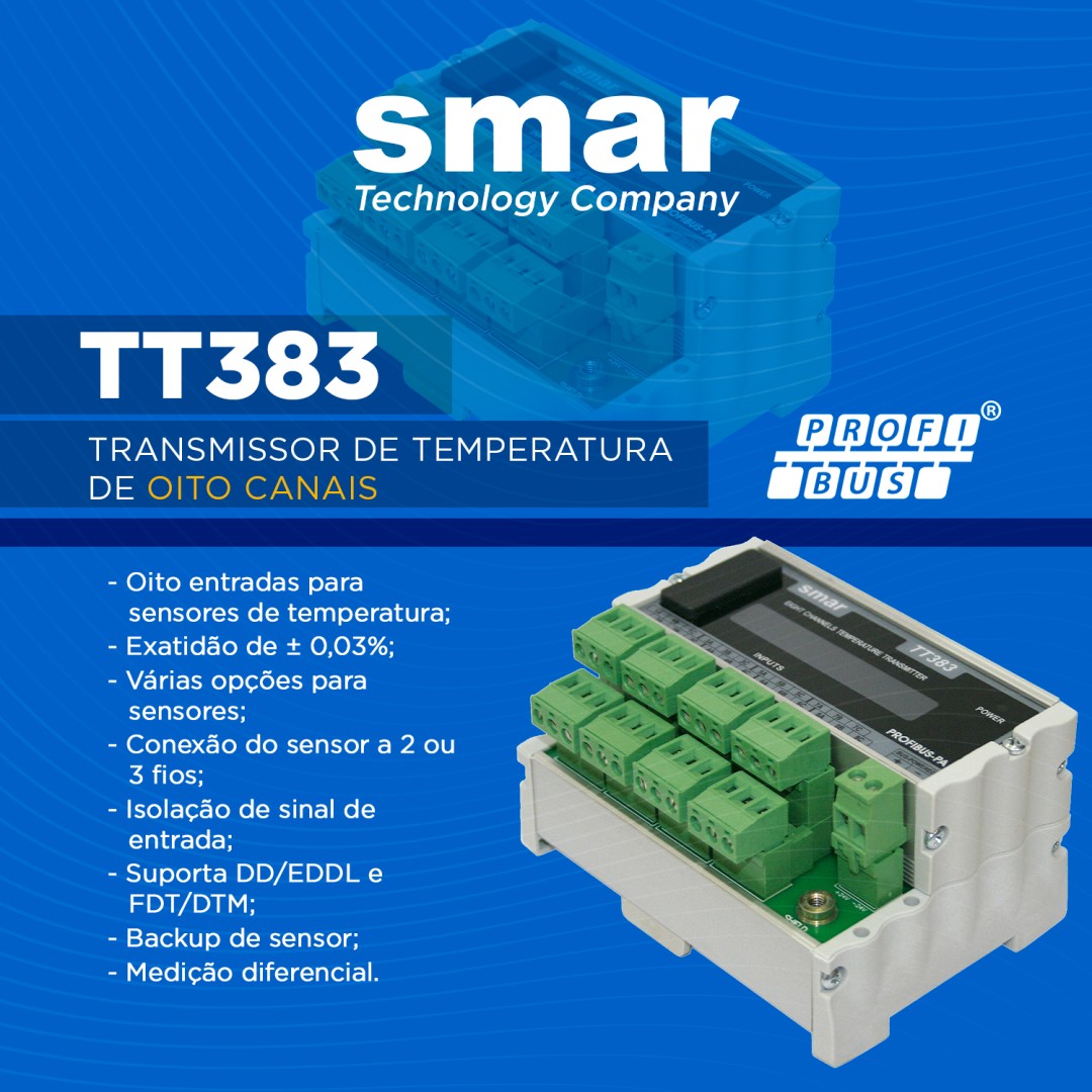 Mais informações: https://www.smar.com/pt/produto/tt383-transmissor-de-temperatura-profibus-de-oito-canais